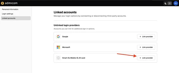 - Click “Link provider” next to Smart-ID, Mobile-ID or ID-card and follow the instructions.