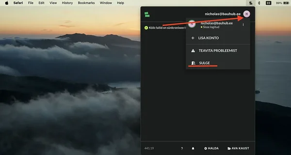 Baudrive'i rakenduse eesmärgiks on failide pidev uuendamine sinu muude tööprotsesside taustal ilma, et peaksid seda ise algatama. Kui oled Baudrive'i esmakordselt käivitanud, siis jääb see käima ning näed selle kohta pisiikooni enda alumisel tegumireal.