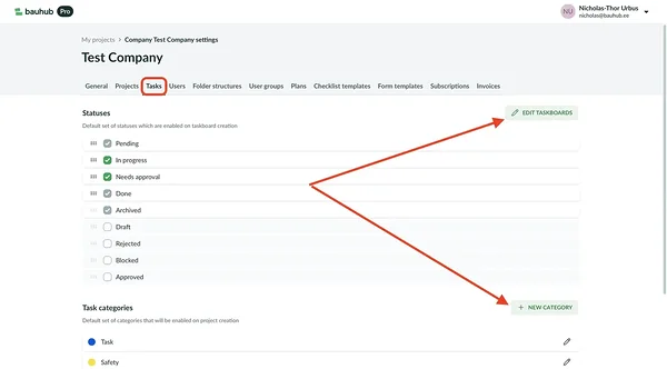 Category can help you easily define what is the type of the task. By default, Bauhub assigns 5 categories for each project: task, RFI, issue, safety and guarantee.